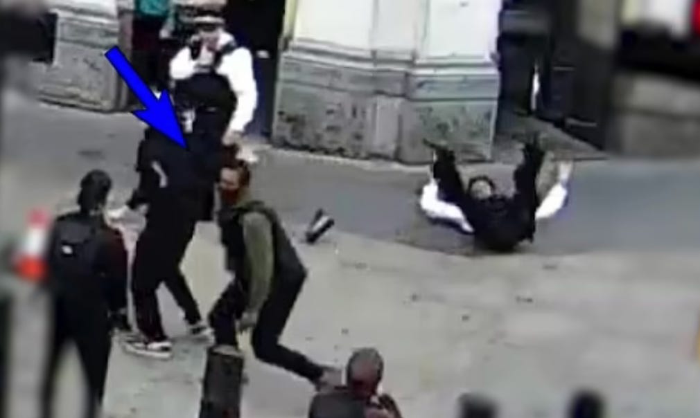 His most confrontational moment came when he stood still as police advanced. After being struck with a riot shield, he pushed back and shouted “scum.”