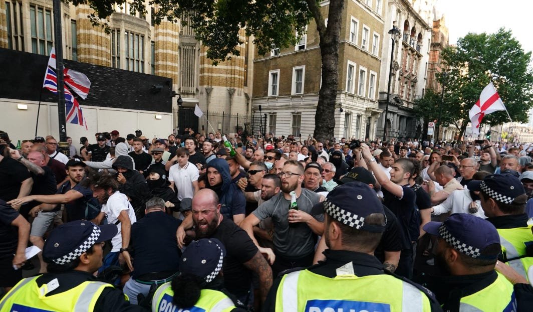 He was initially arrested and released before later being re-arrested and charged with violent disorder under Section 2 of the Public Order Act 1986. His remand status remains unclear. He pleaded guilty.