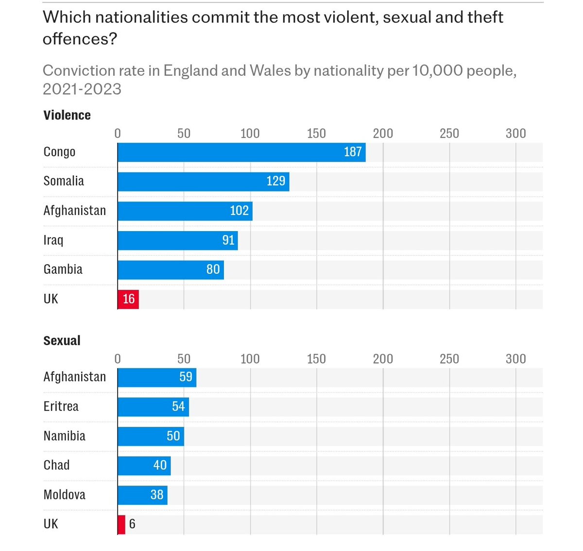 Figures obtained by the Centre for Migration Control in March found that Afghans are 22 times more likely to be convicted of sexual assault than British nationals.