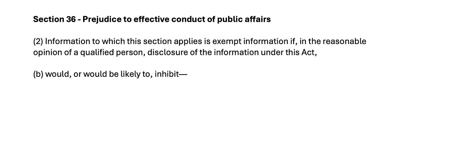 This is despite the original FOI request making clear that any personal information could be redacted, as is the norm for most requests concerning government employees or correspondence.